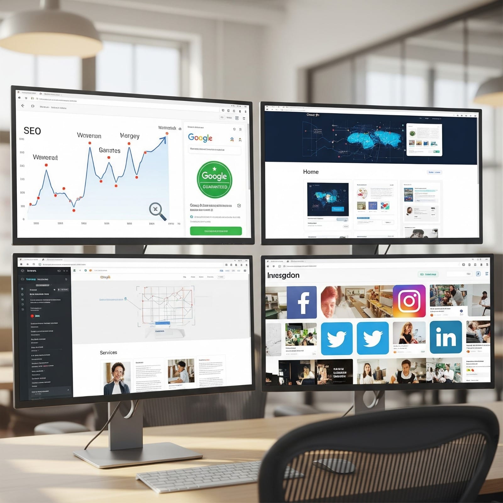 From strategy to execution, our services span digital marketing, brand design, and web design to build a growth-ready presence. We plan search-first content and run SEO and Google Ads programs that capture intent and lower acquisition costs. Our designers and engineers ship accessible, Core Web Vitals–friendly websites with clean information architecture, fast performance, and seamless CRM and eCommerce integrations.